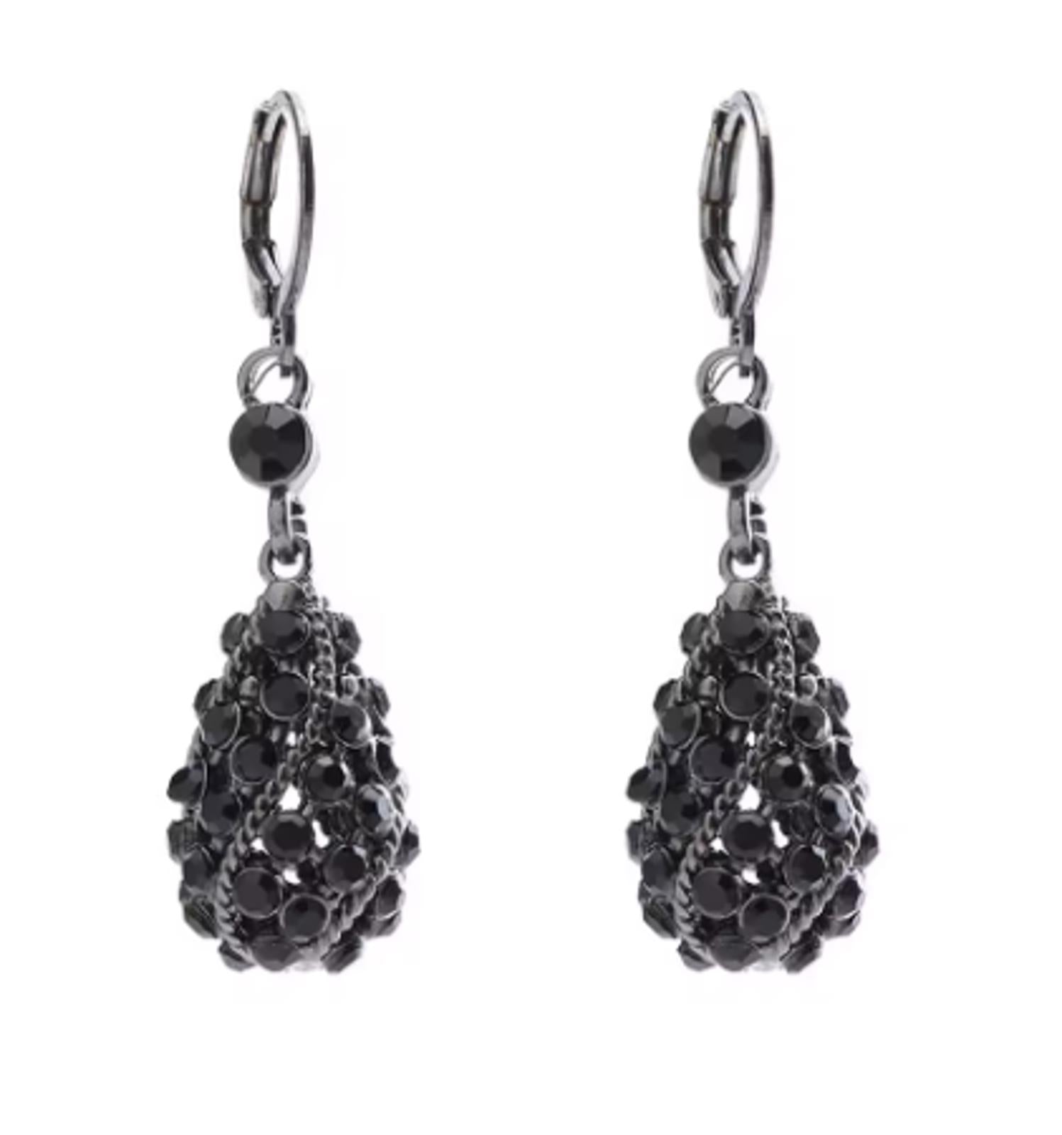 Black crystal drop - Earrings - Silver - CZs - 1.5"