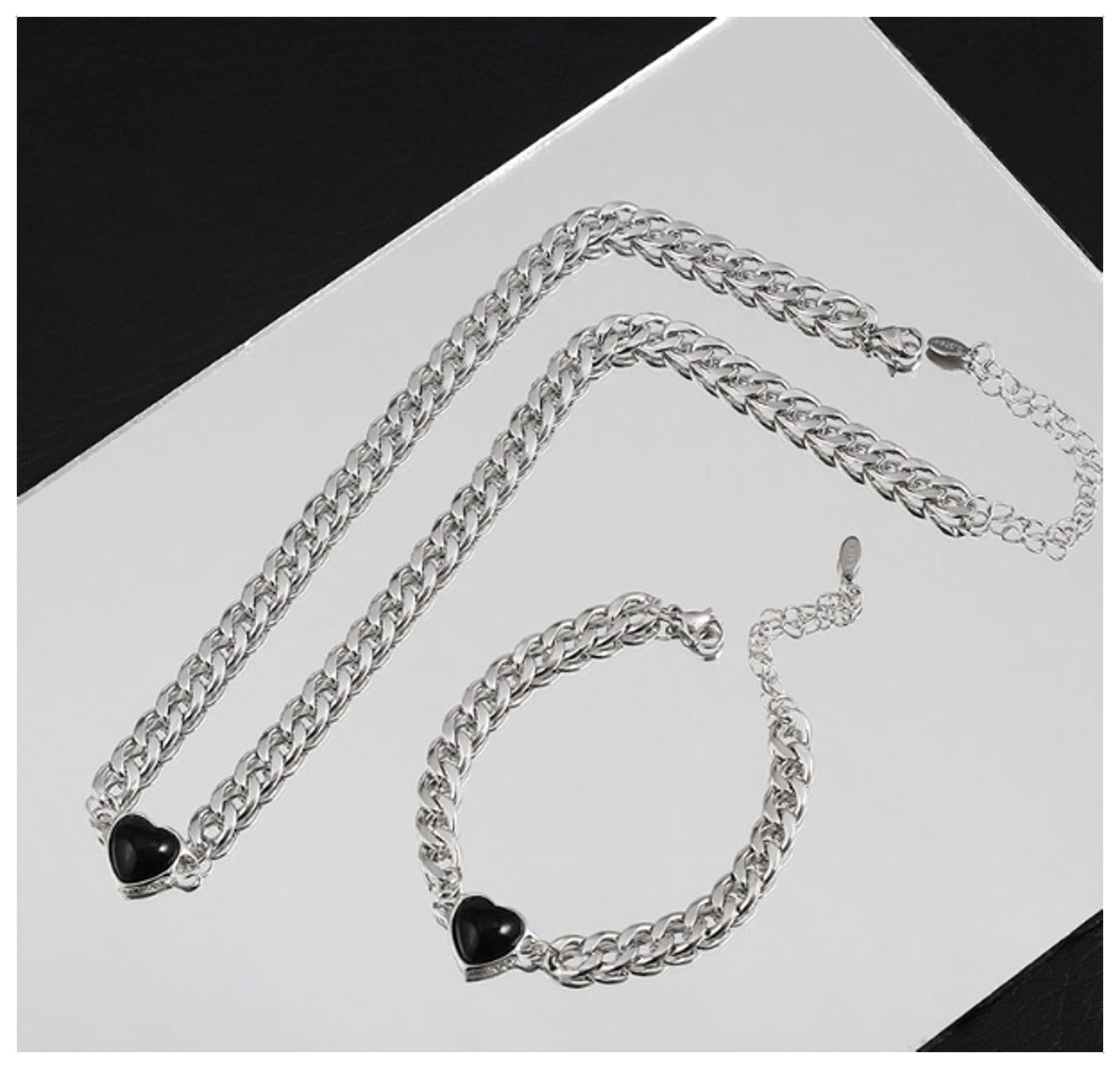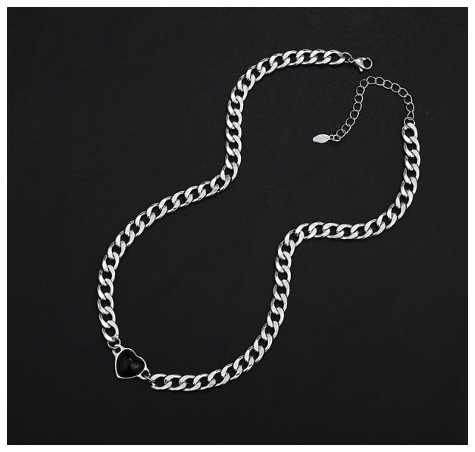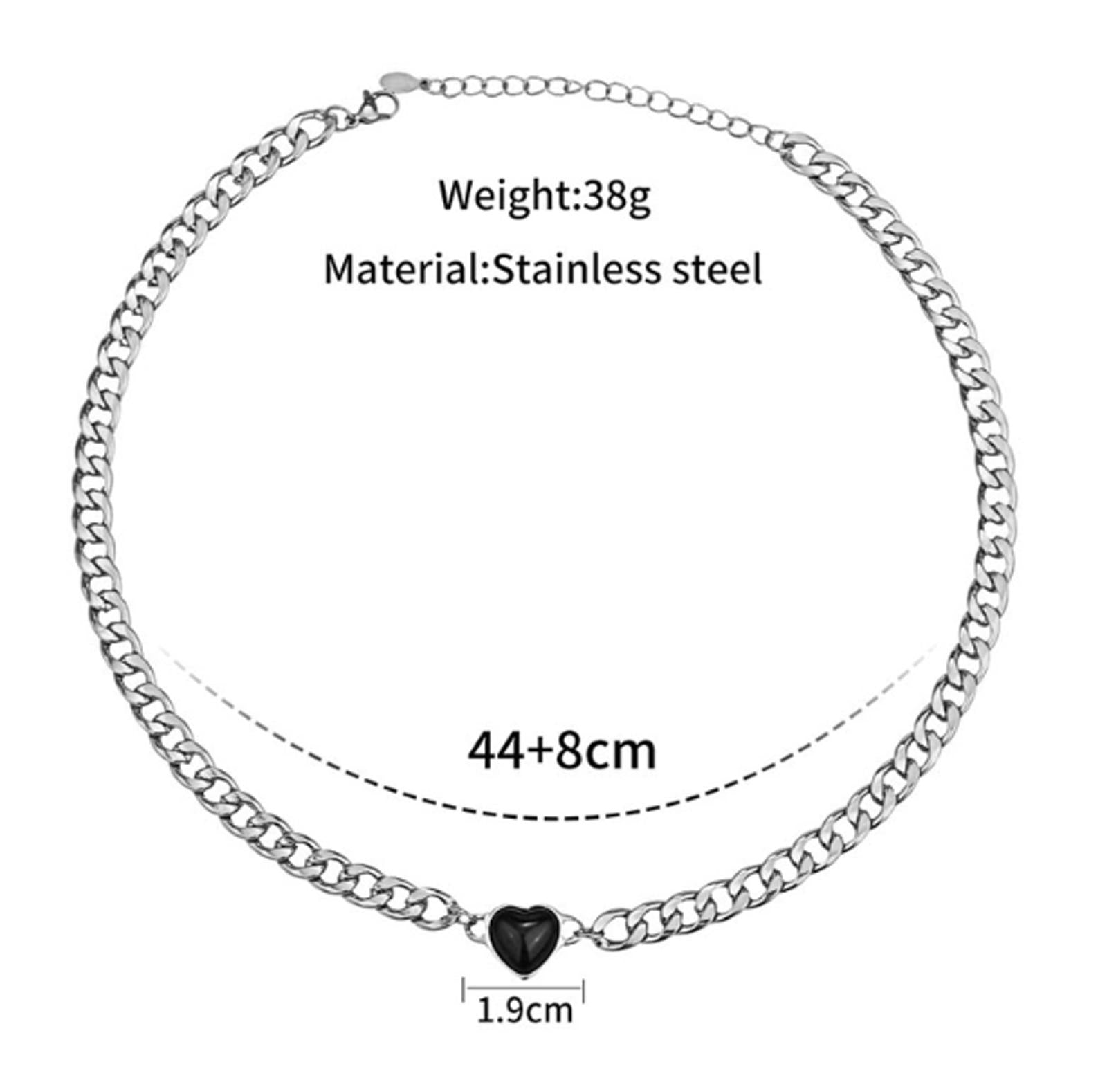 Black Heart Necklace - Titanium Steel - CZs - 18-20"
