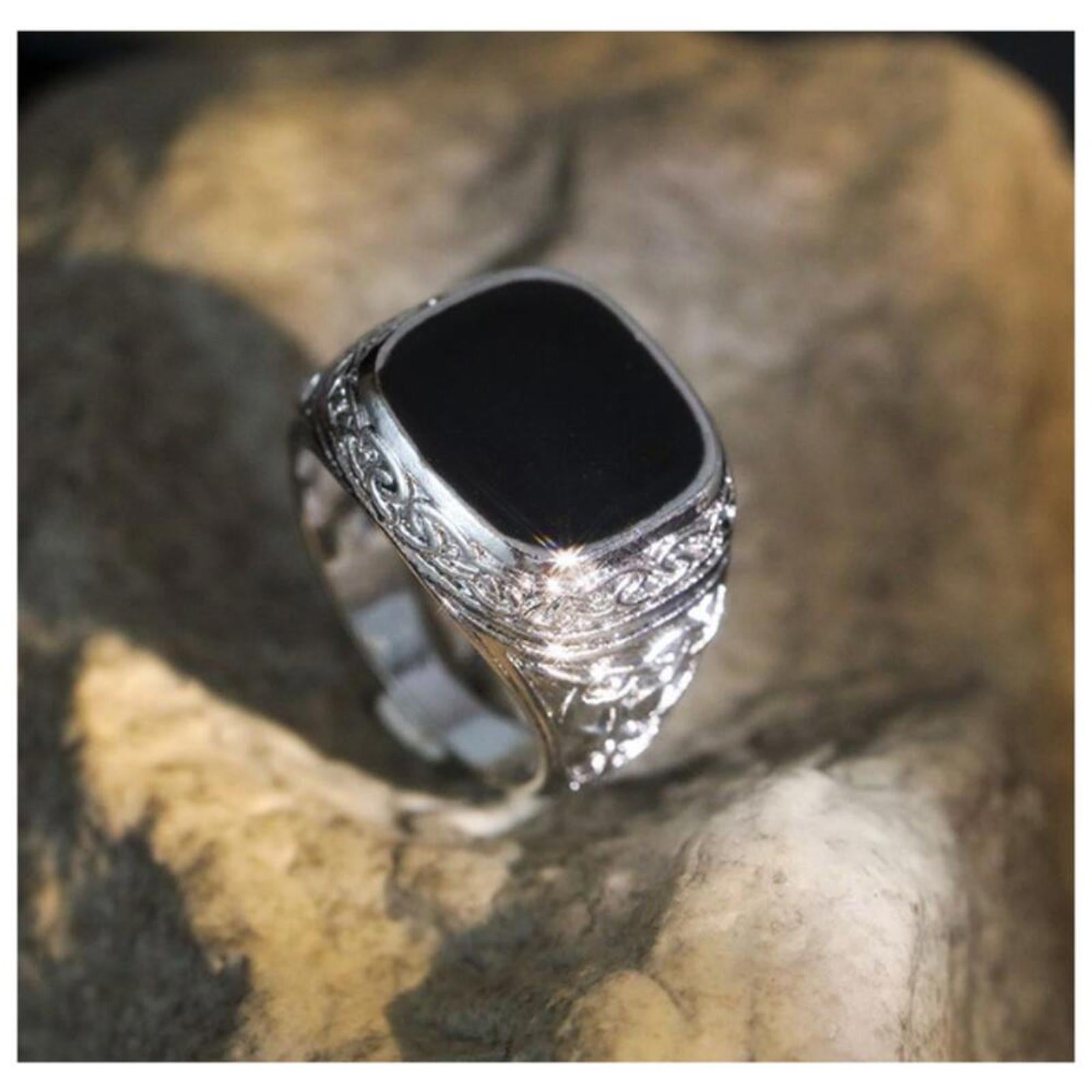 Black intricate ring - silver - Stone - Size 10.