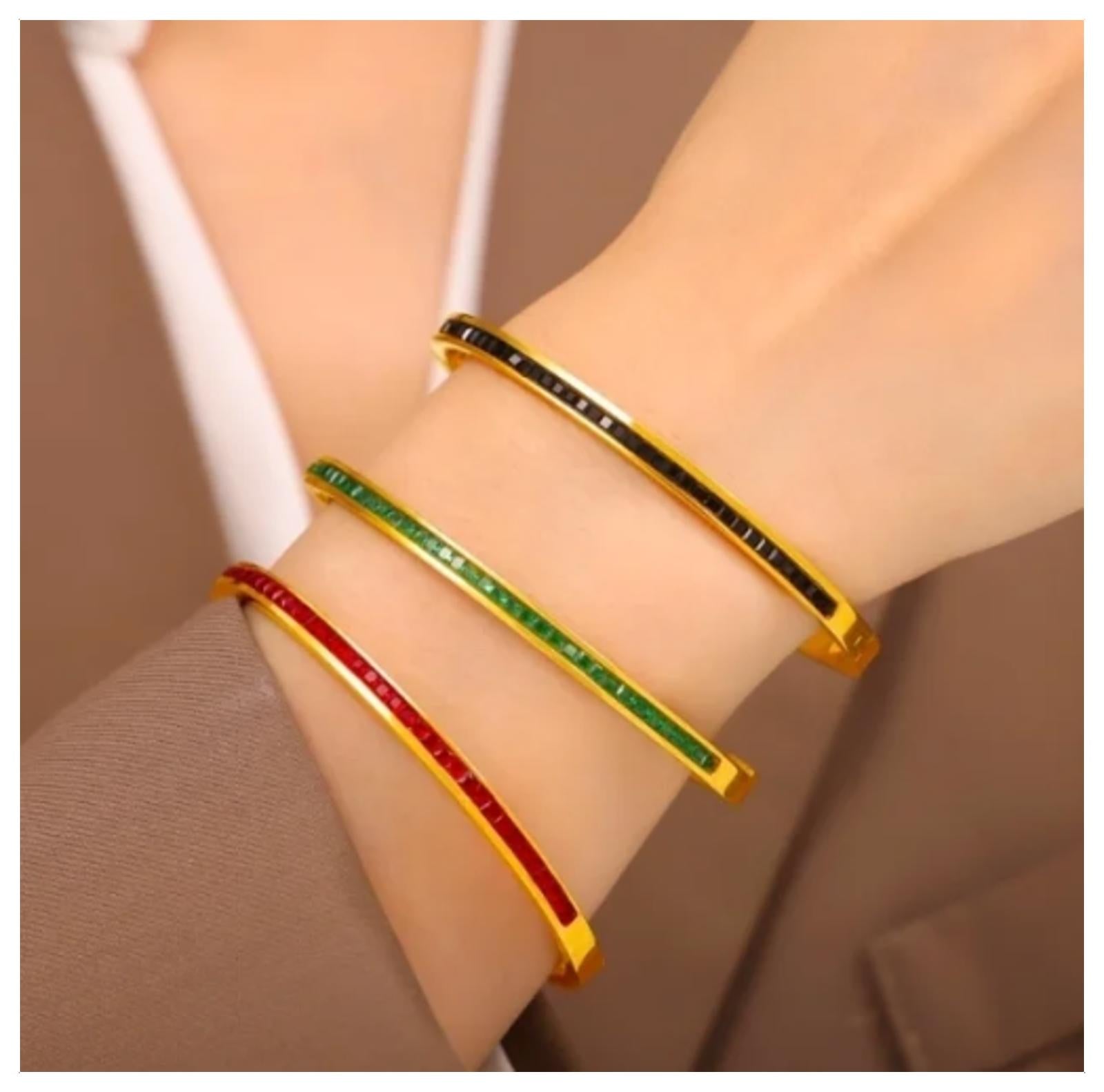 Black princess cut hinged bangle - Bracelet - Gold - CZs - 7.5"