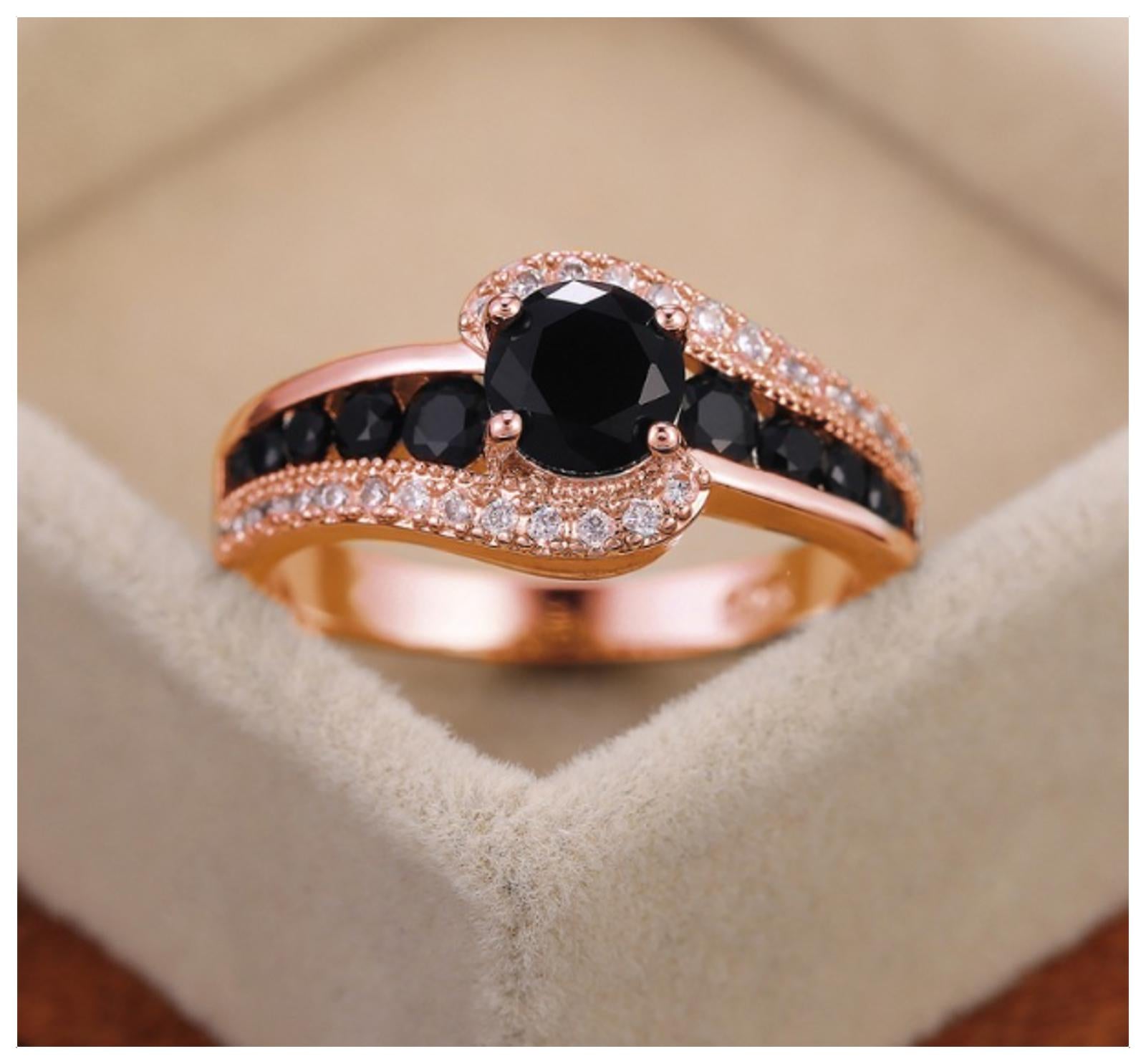 Black swirl Ring - Rose Gold - CZs - Size 6