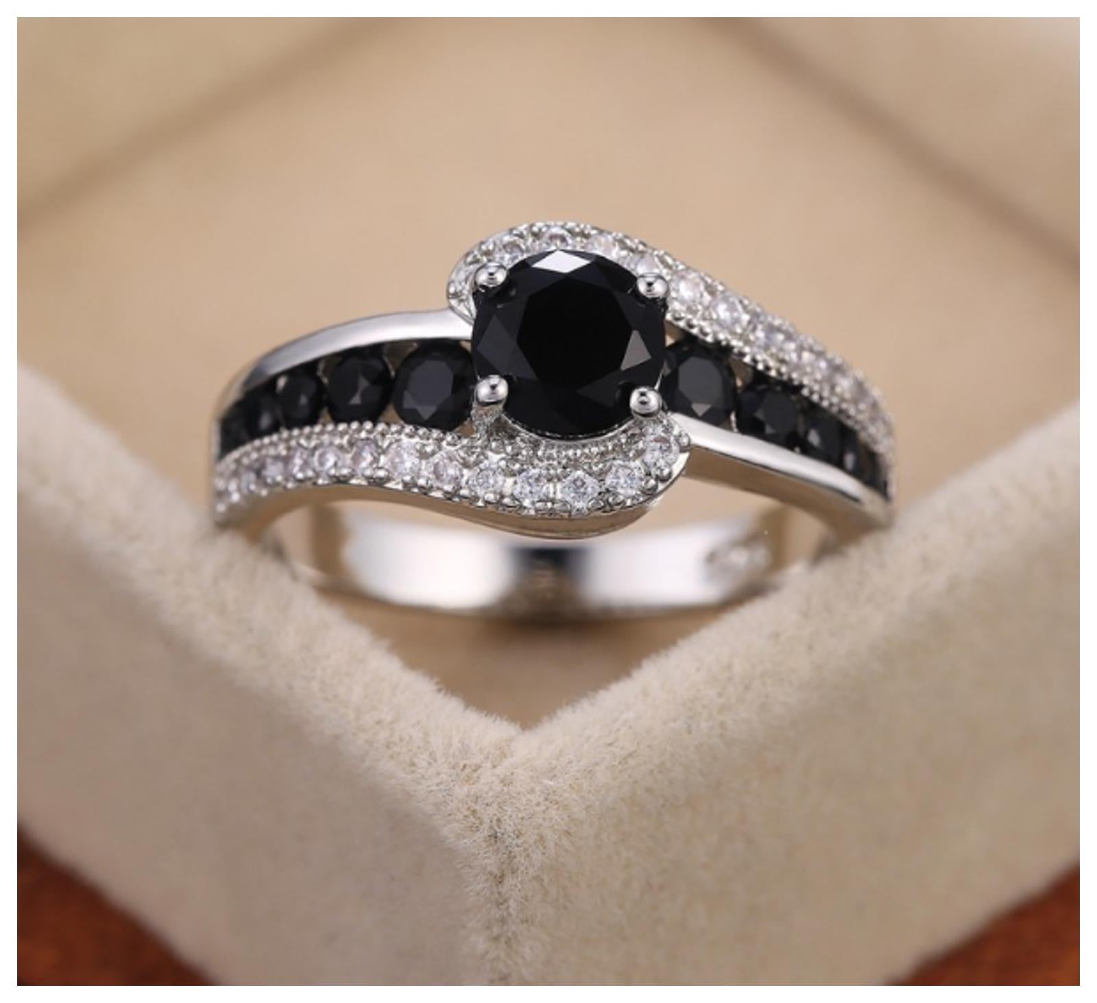 Black swirl Ring - Silver - CZs - Size 8