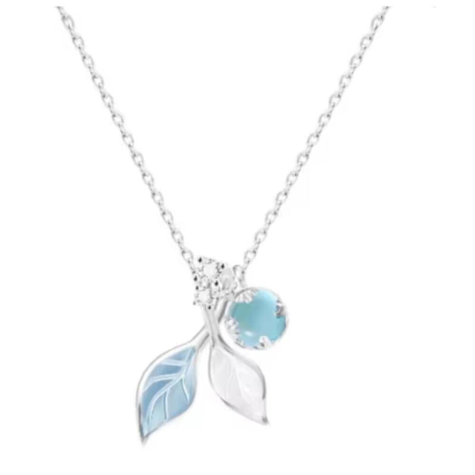 Blue and white leaf necklace - silver - CZs - 16-18"
