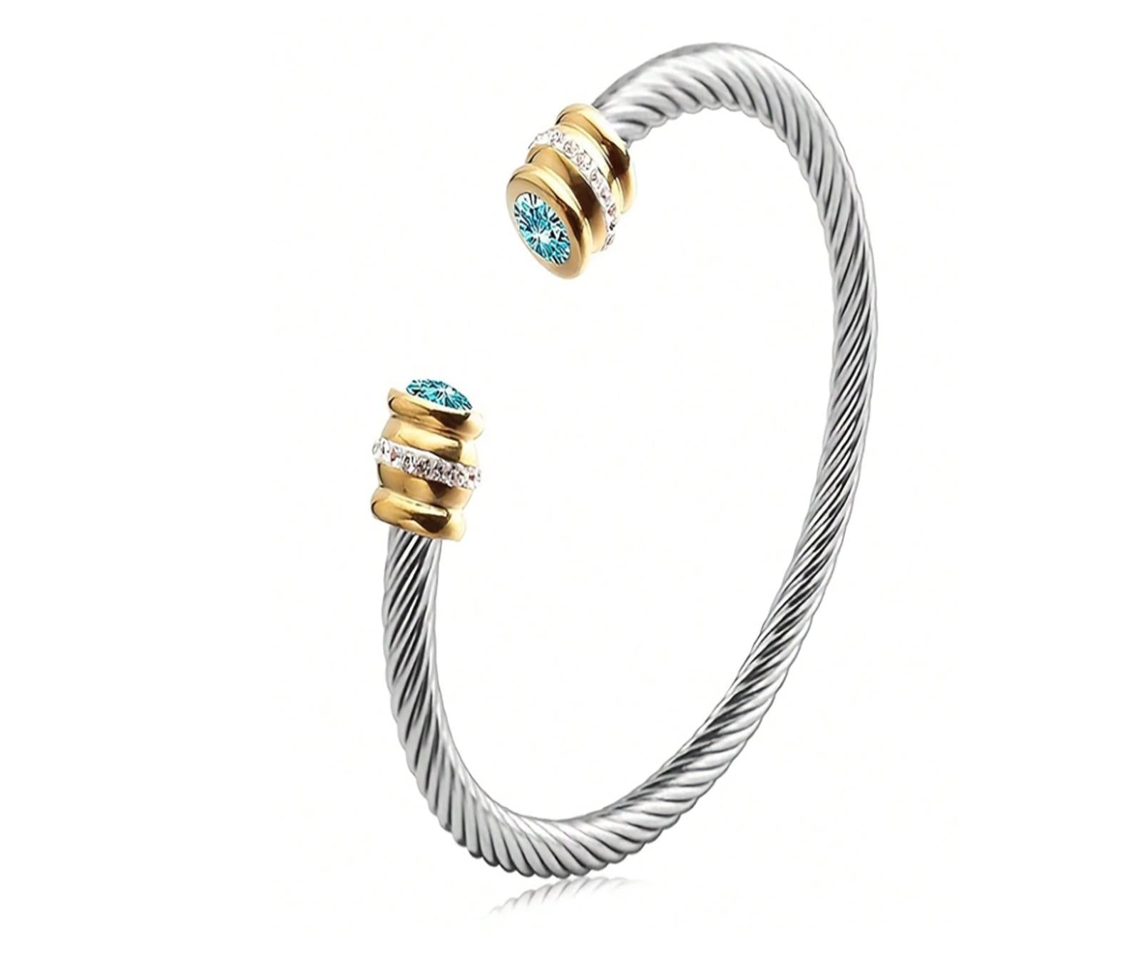 Blue cable December - Bangle Bracelet - Stainless Steel - CZs