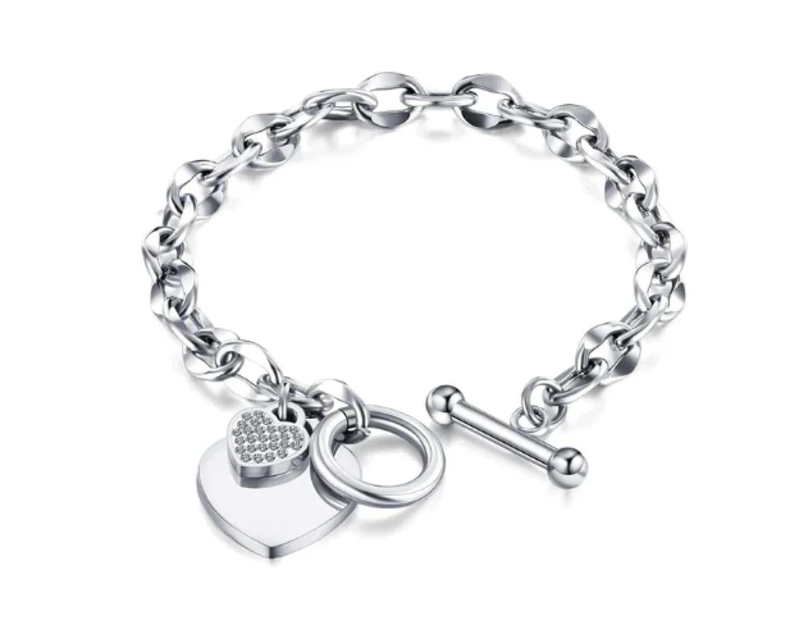 Double heart charm - Bracelet - Silver - CZs - 8"