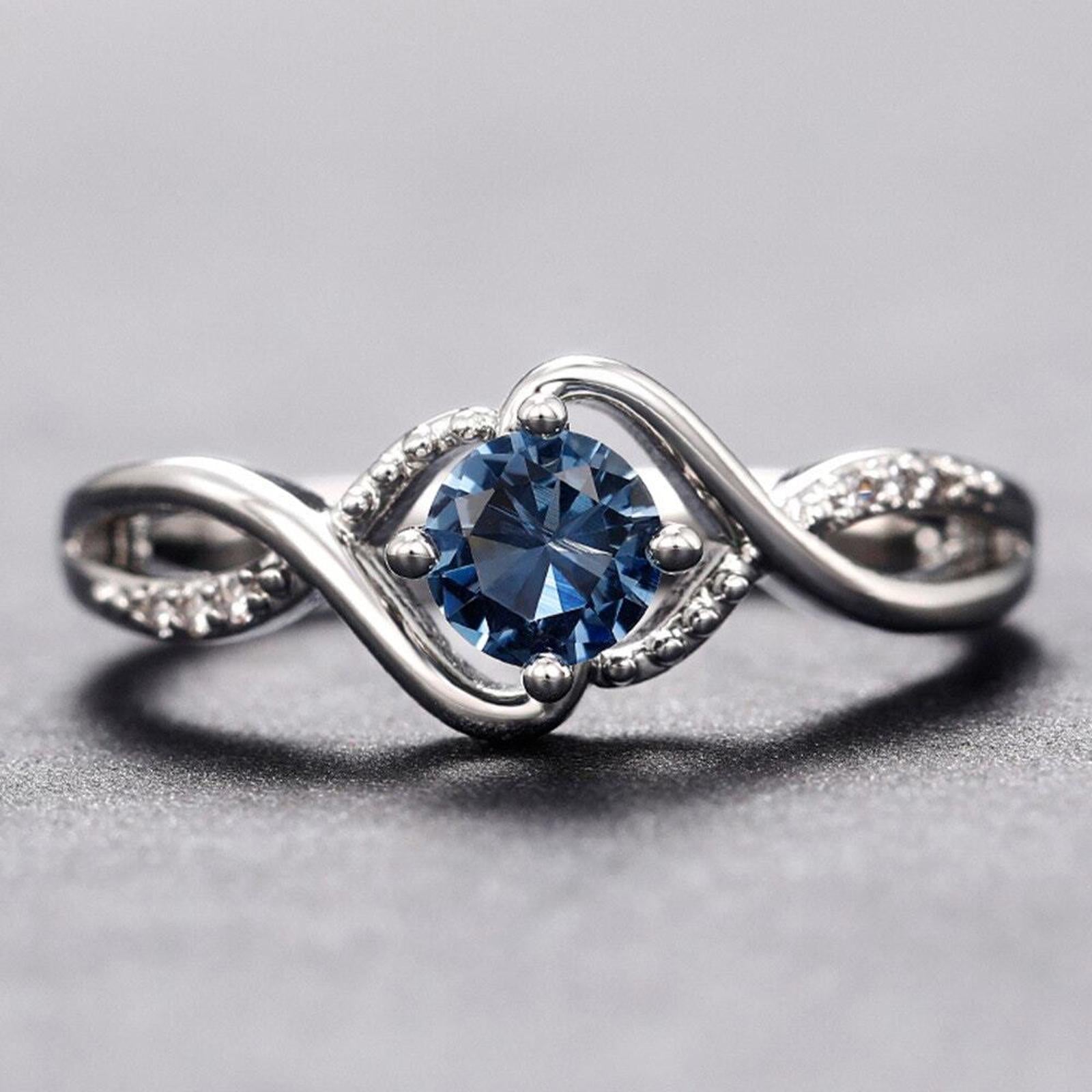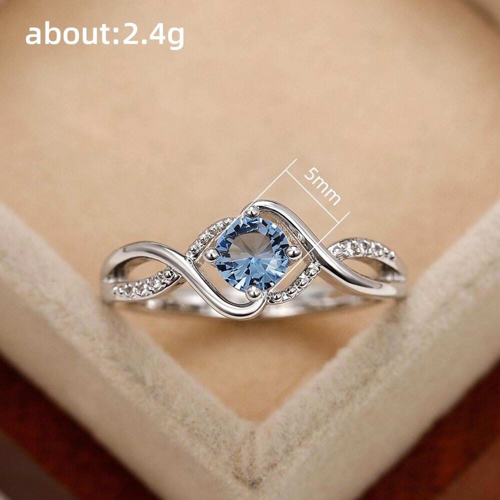 Light blue round twist RING - Silver - CZs - size 6