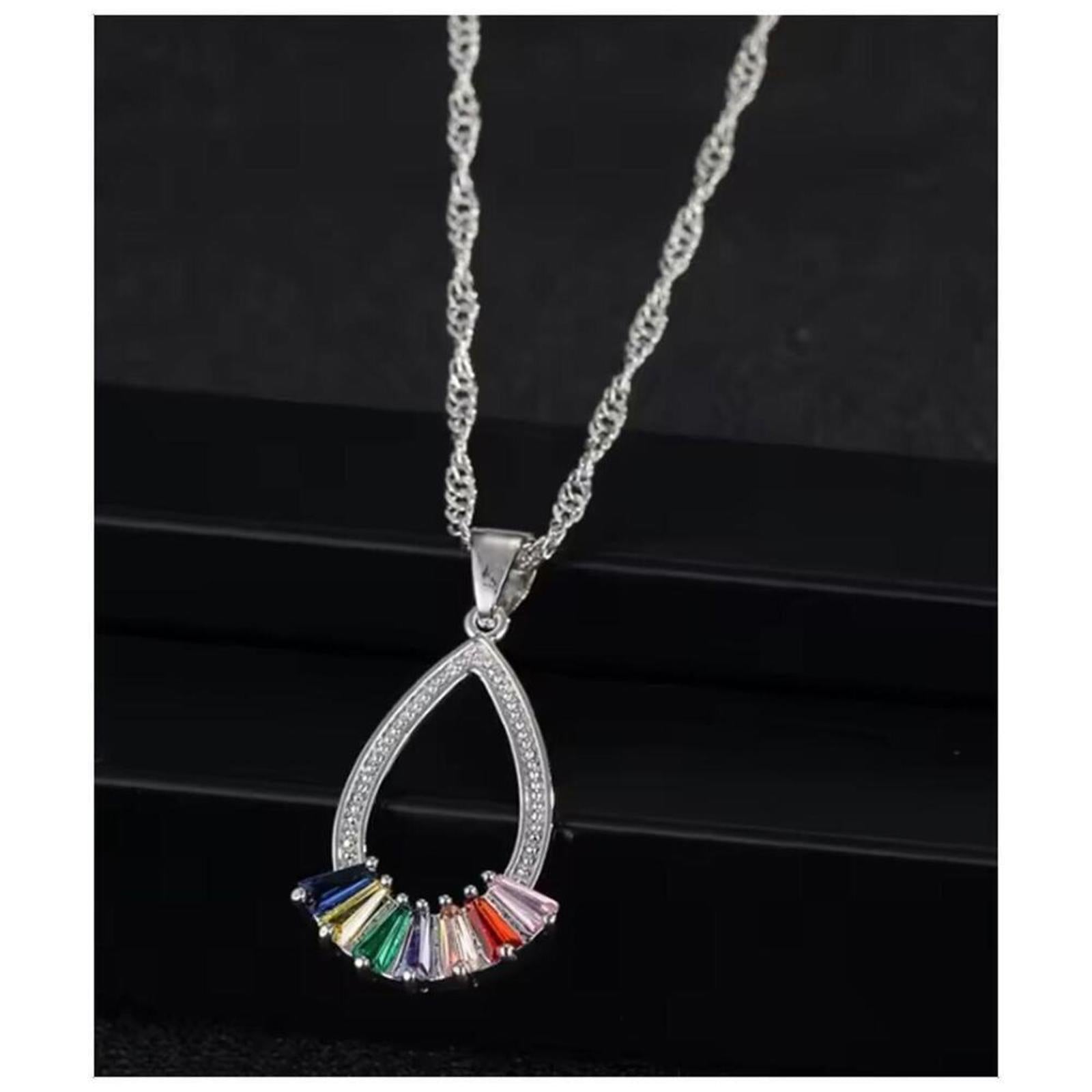 Multi color baguette pendant necklace - silver - CZs - 18"