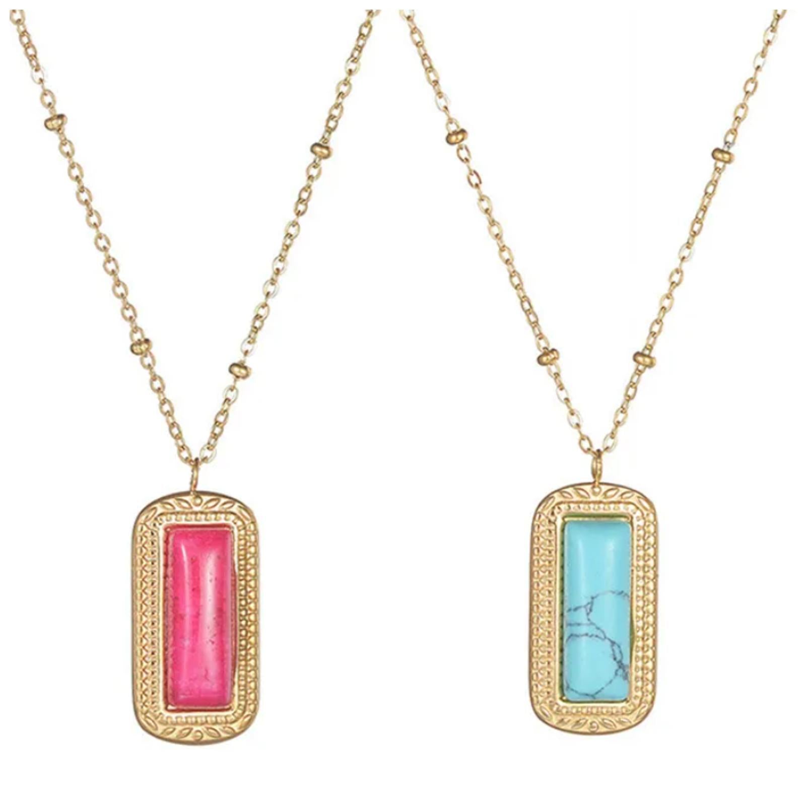 Natural turquoise rectangle pendant - Necklace - Gold - 18"