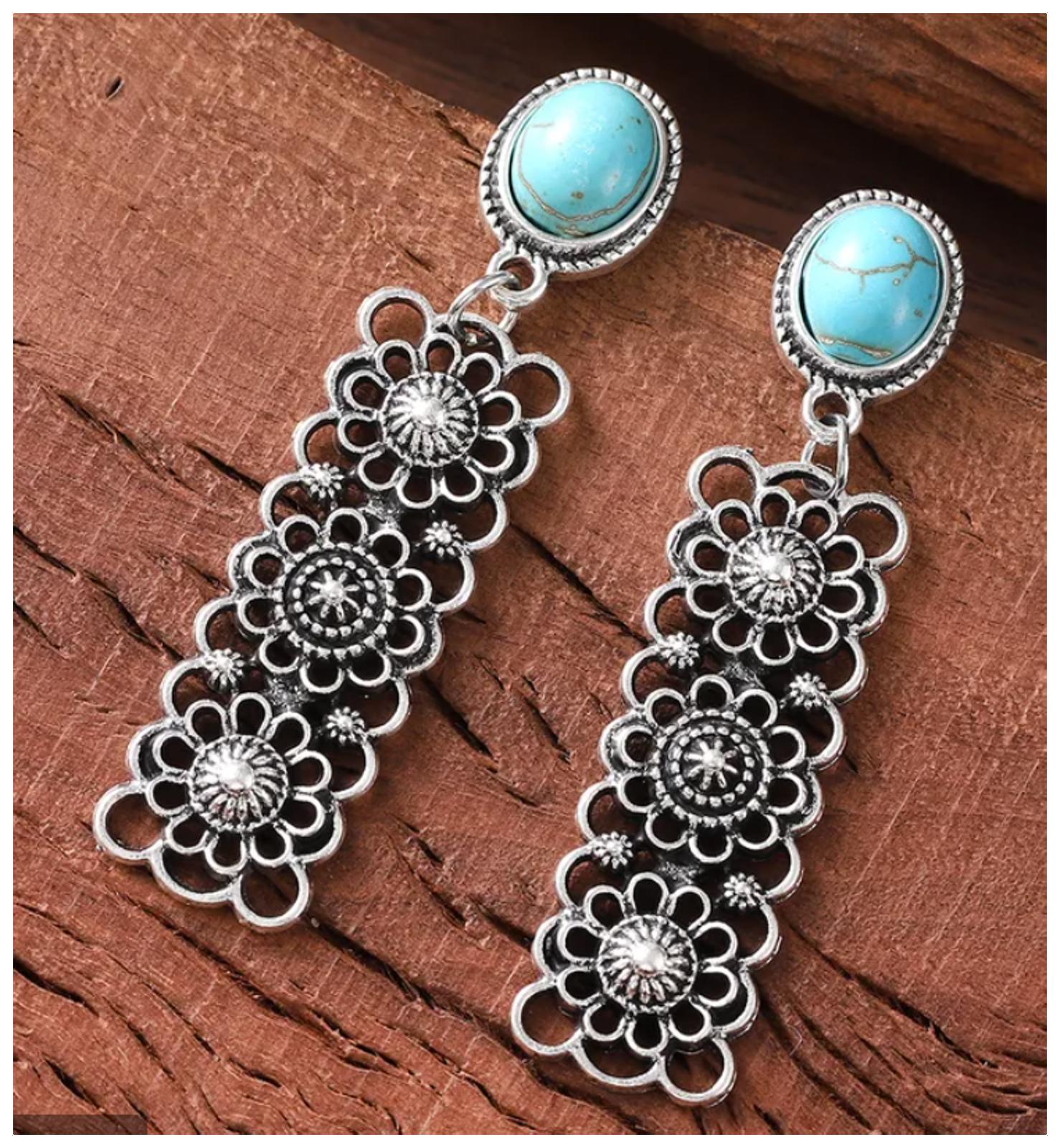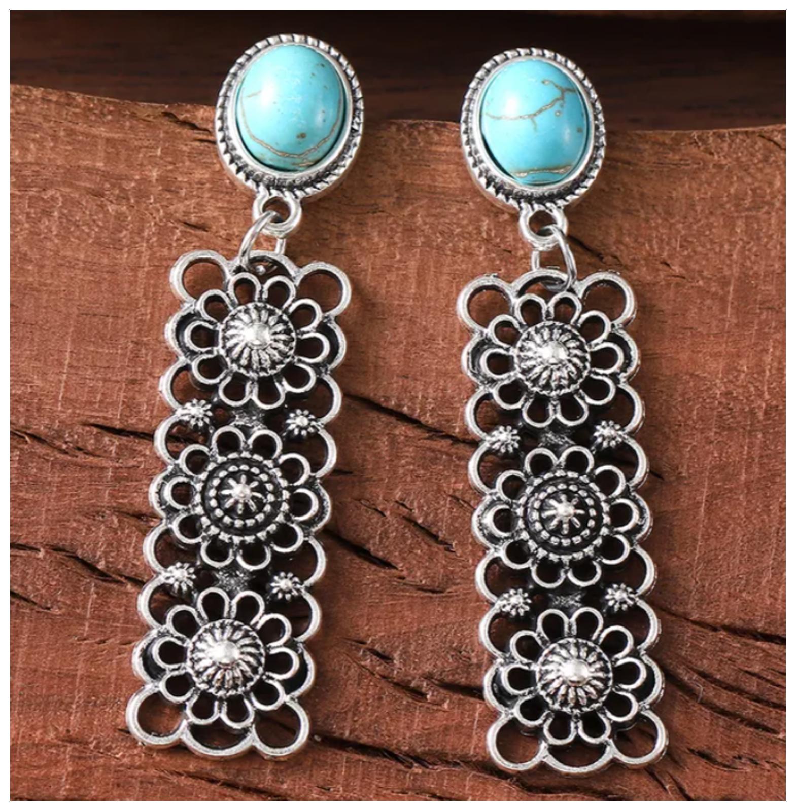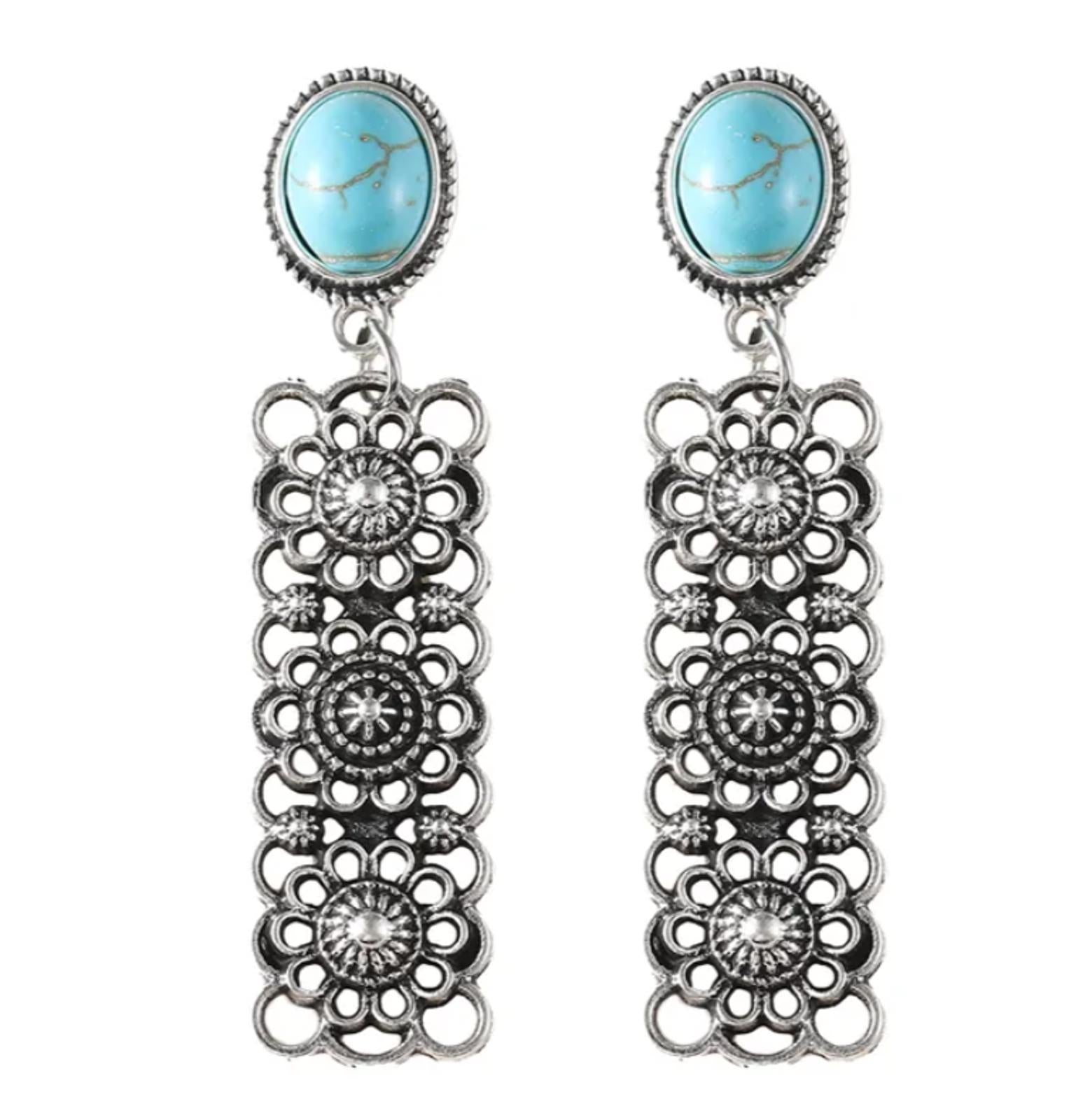 Natural turquoise rectangle retro - Earrings - Gold - 5.6cm