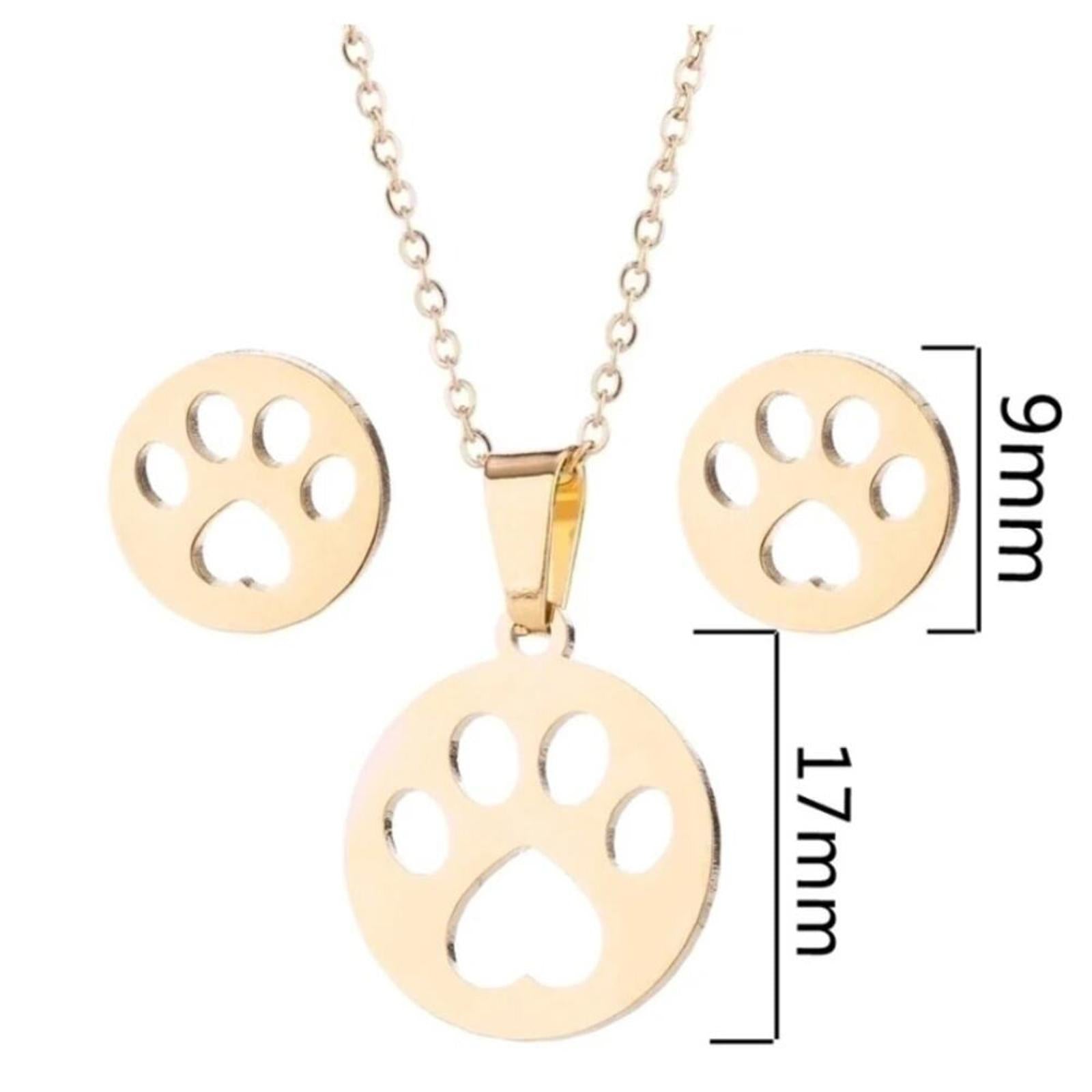 Paw Print Set - Gold - 16-18" Necklace & Earrings