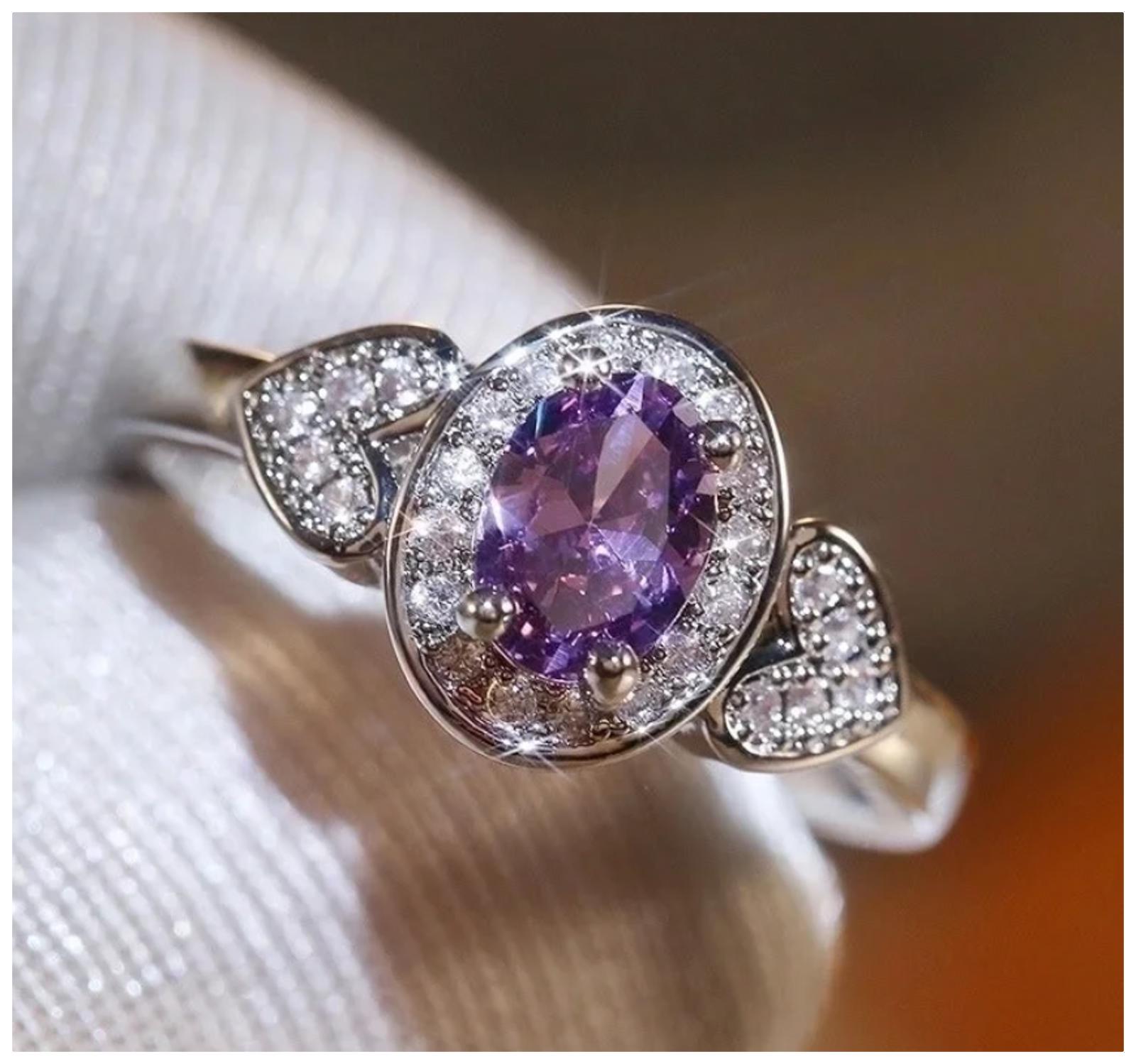 Purple oval and hearts - Ring - Silver - CZs - Size 8