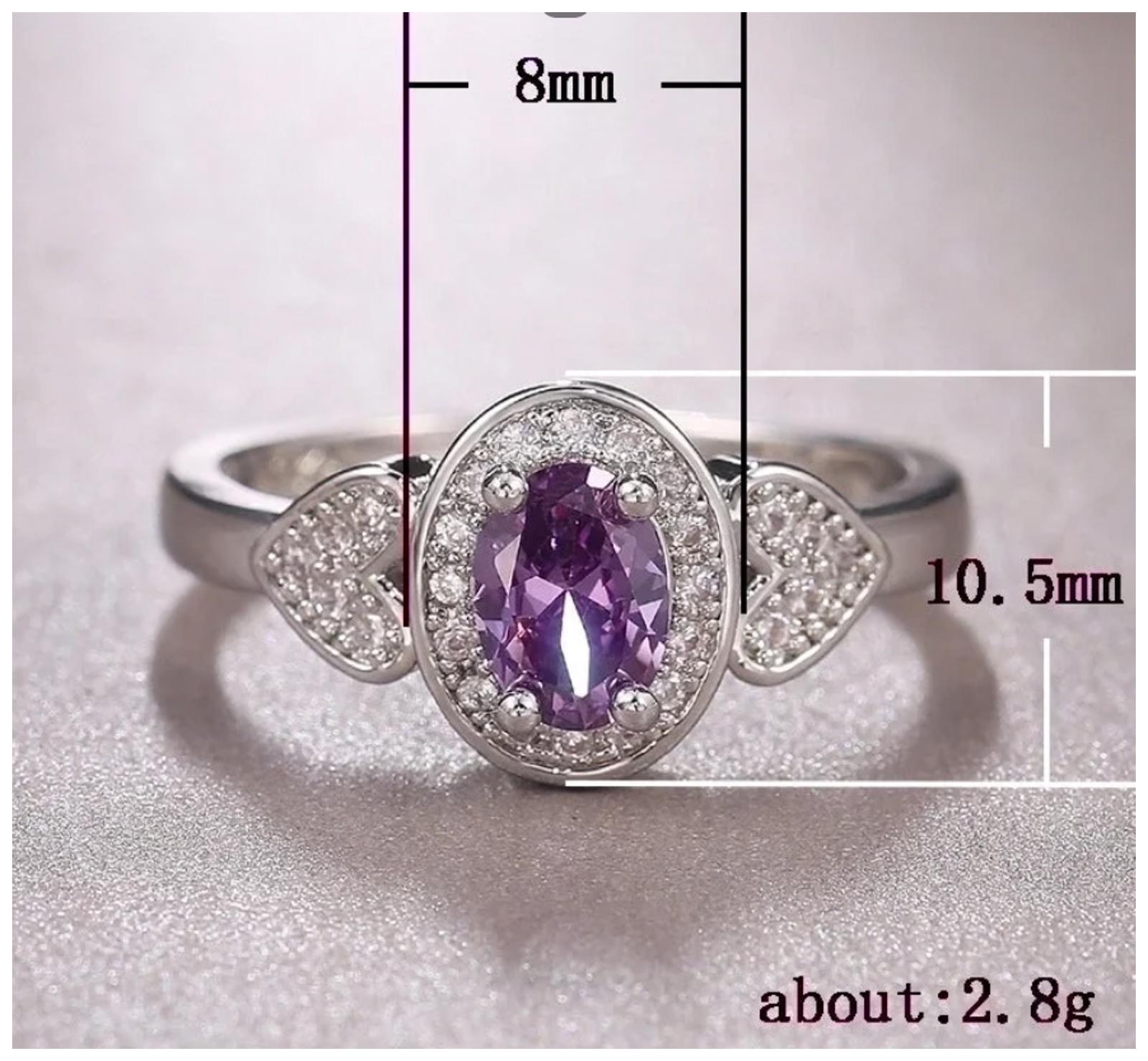 Purple oval and hearts - Ring - Silver - CZs - Size 9