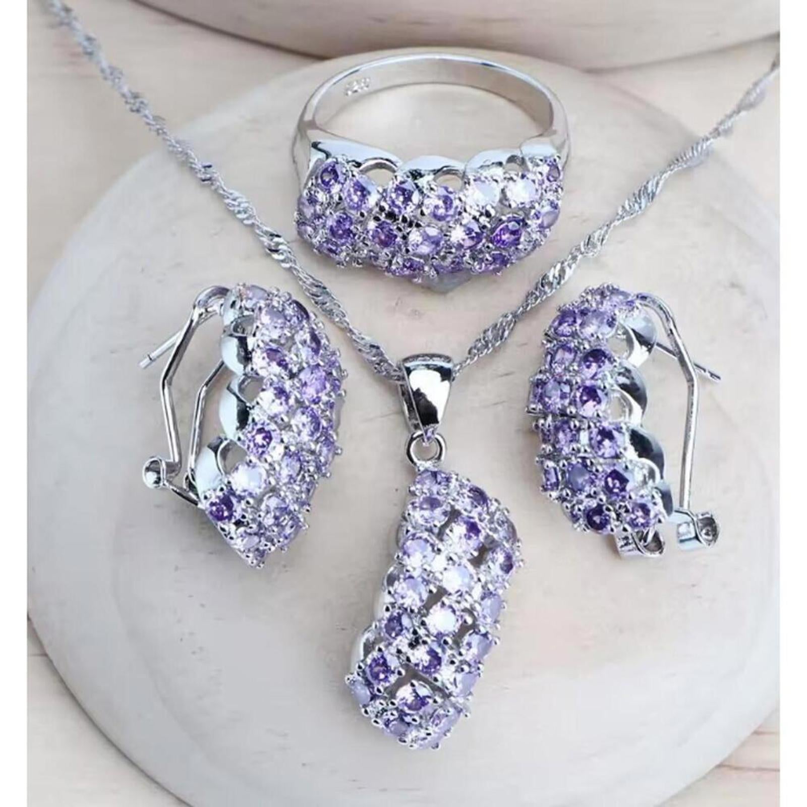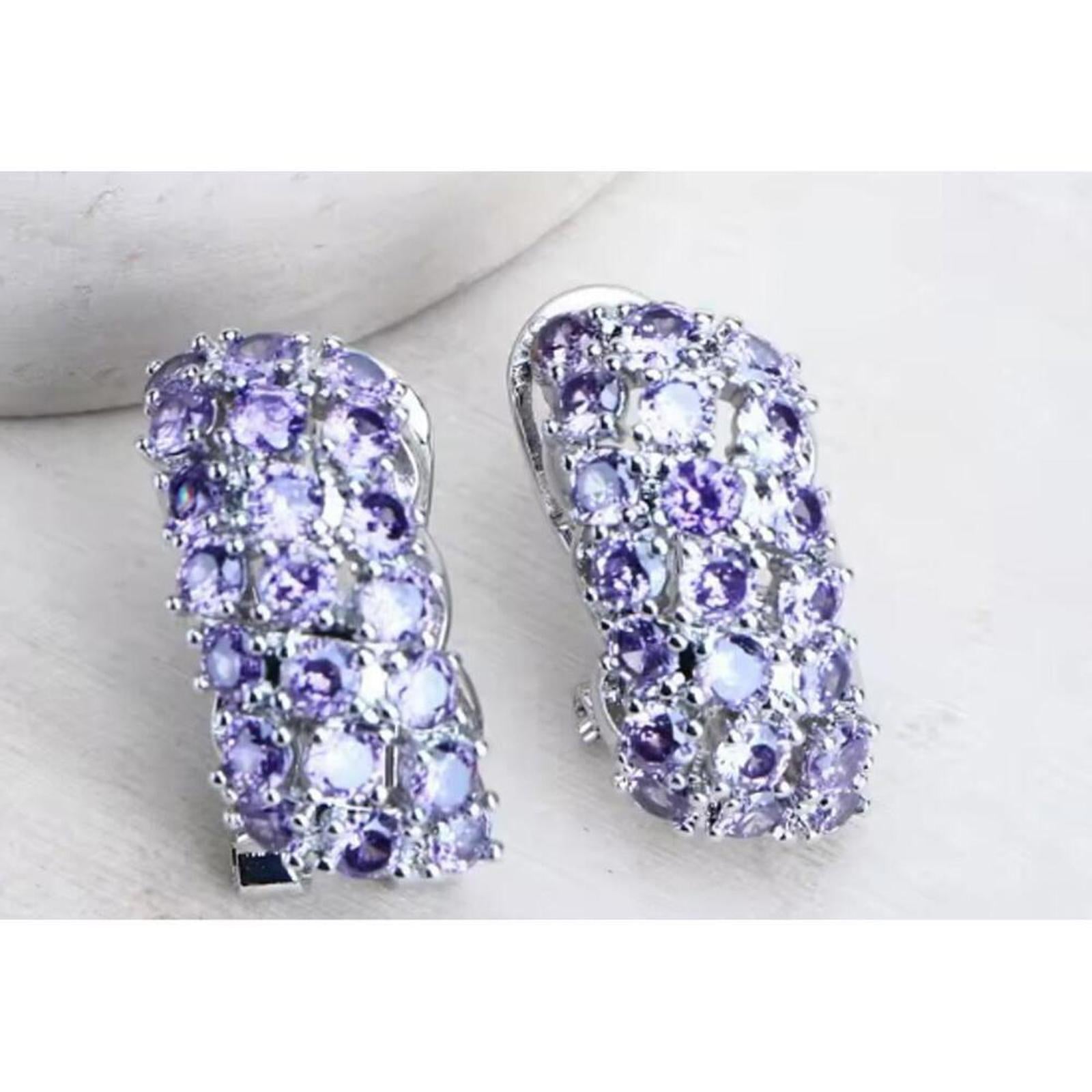 Purple waterfall earrings - silver - CZs