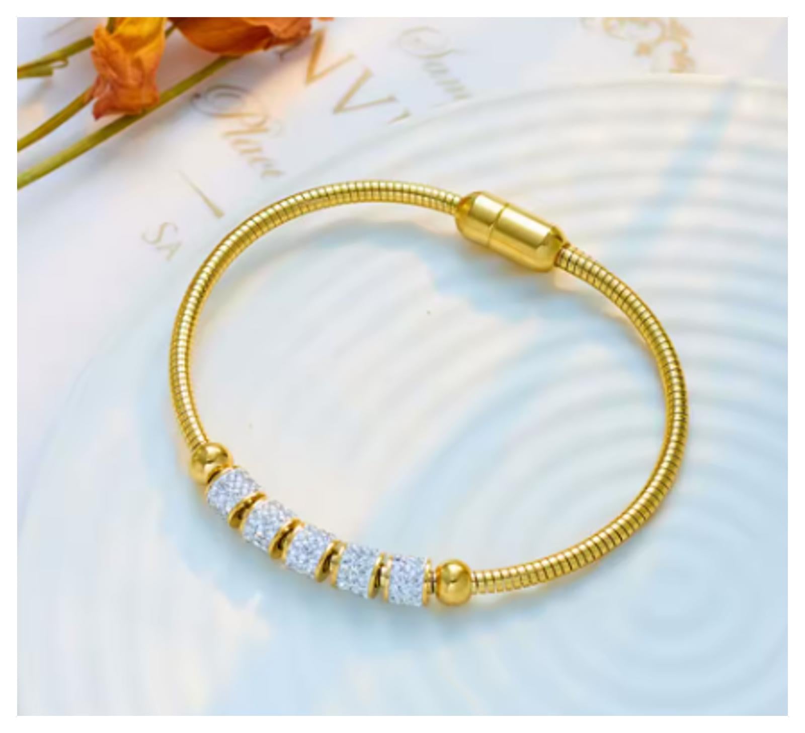Rhinestone beaded bangle - Bracelet - Gold - CZs - 7.5"