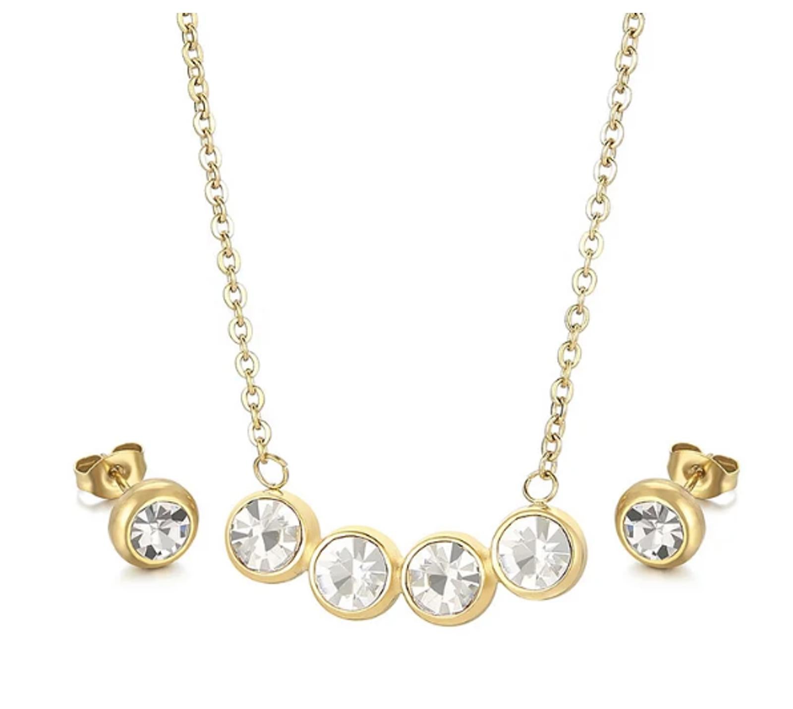 Round bezel set - Necklace/Earring set - Gold - CZs - 18"