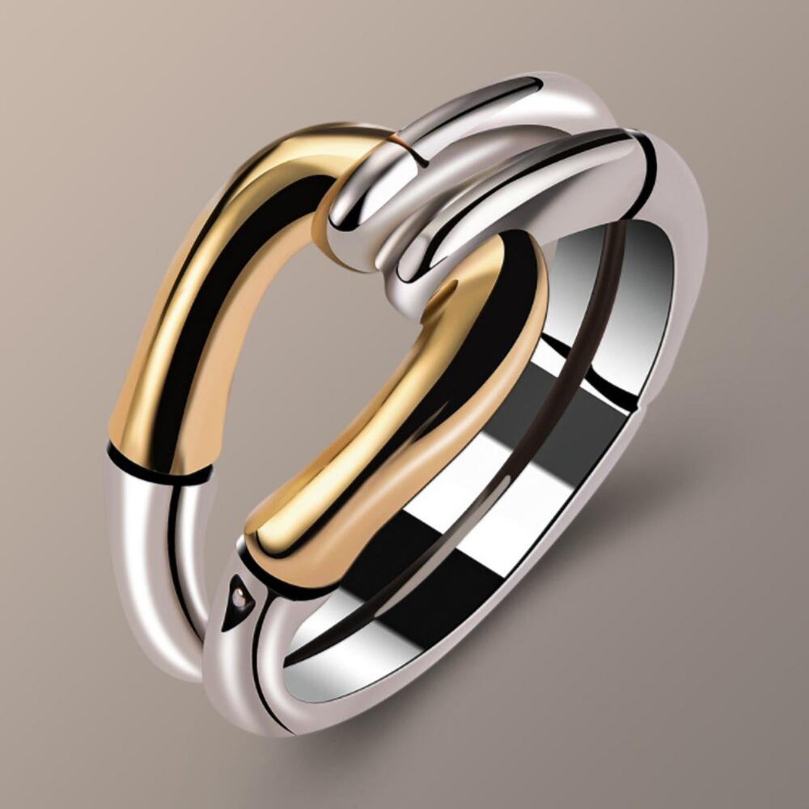 Two Tone horseshoe band RING - Silver - CZs - size 7