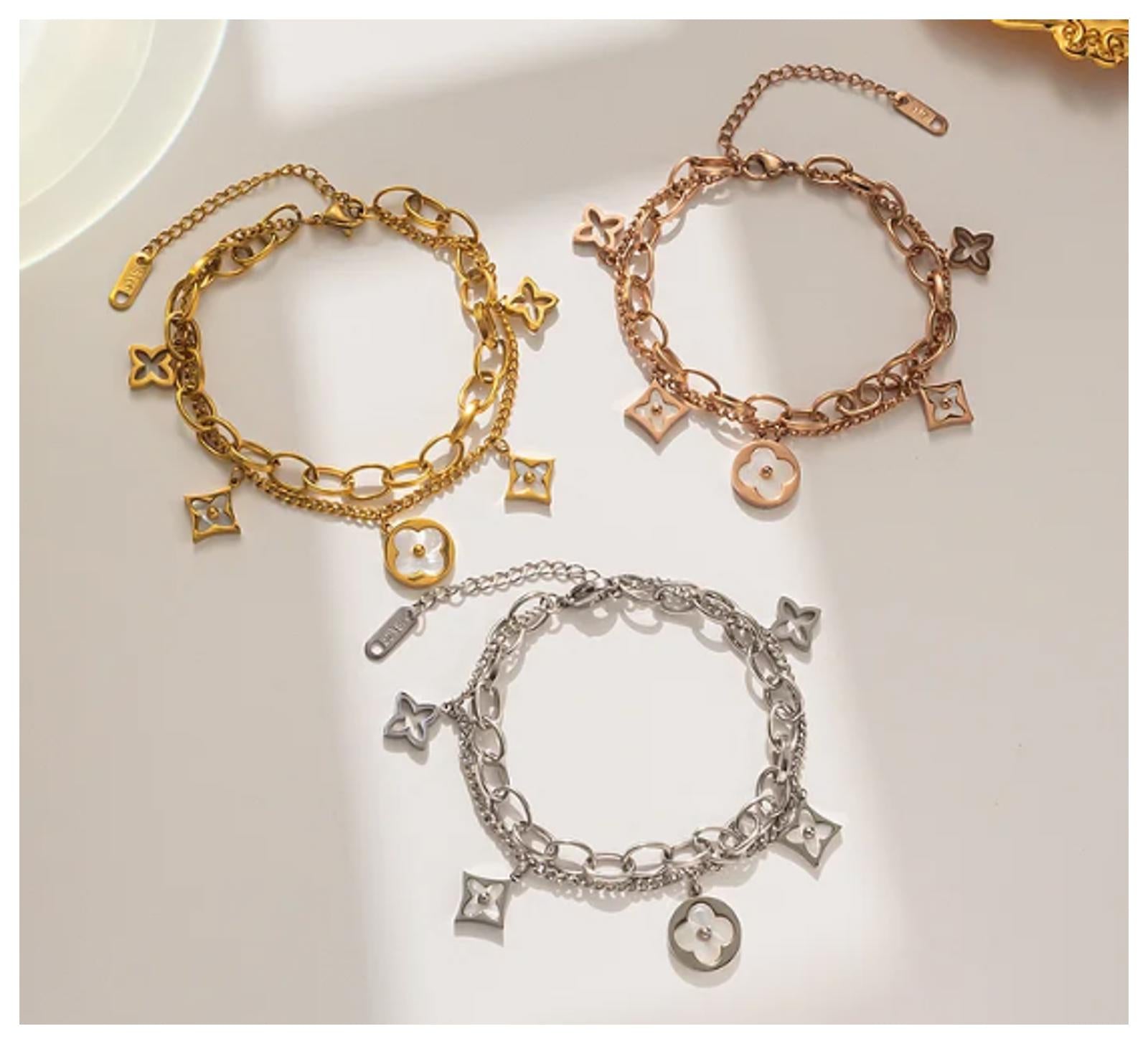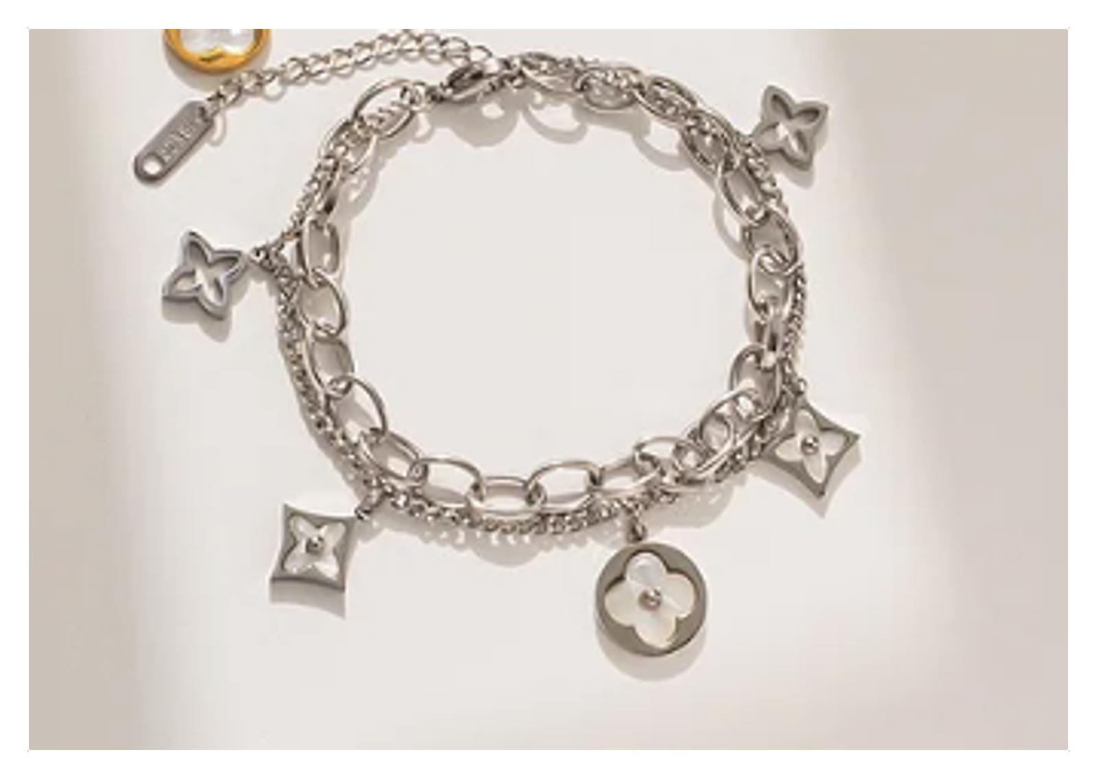 White flower charm - Bracelet - Titanium steel - 6.5-8"